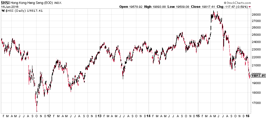 在內地股市表現弱勢下,港股跌勢未止,恆指跌破20,000點。技術上,港股已嚴重超賣,短期後市有機會反彈。不過,由於港匯轉弱,加上基本因素疲弱,港股後市維持小漲大回。恆指已於去年8月跌穿長期上升通道,以量度跌幅計算,恆指可低見17,500點。