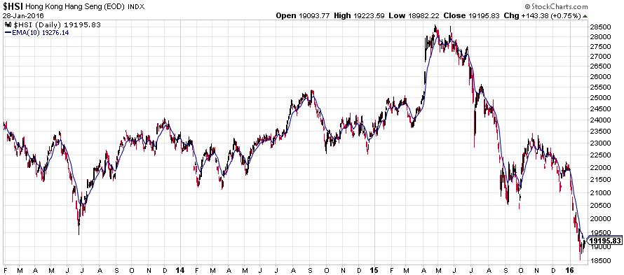 受A股急跌、油價低迷等因素拖累,恆指持續大幅波動。自2016年以來,恆指的日中高位均受制10天線,在恆指升越並企穩10天線前,港股仍弱勢,後市有機會再試18,500點;反之,港股有望進一步反彈。
