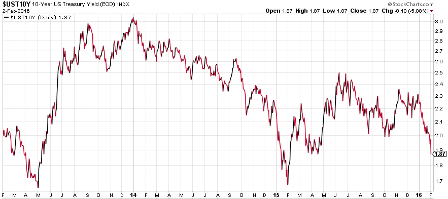自美聯儲去年12月加息後,美國10年期國債孳息率持續回落,近日更創出近十個月新低,此現象帶出兩個訊息:第一,市場預期美國將會放慢加息步伐;第二,環球避險情緒持續高漲,股匯及商品市場短期或將繼續大幅波動。