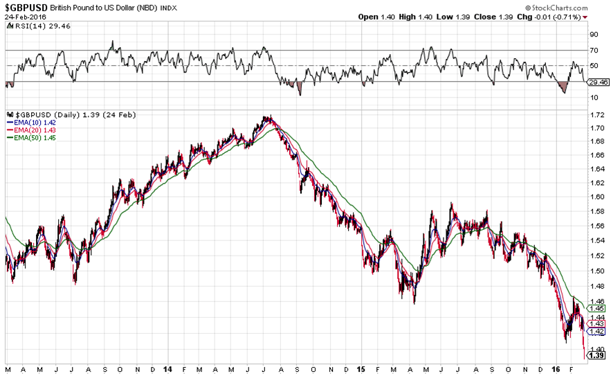 近日英國退出歐盟的憂慮持續升溫,英鎊加速下跌,已失守前期支持位1.4079點位,指數現跌近至超賣區域,技術上亦位於下降軌。如果英國退出歐盟的預期氛圍愈加濃厚,恐會延伸跌勢或下探2008年低點1.3503關鍵支持位。
