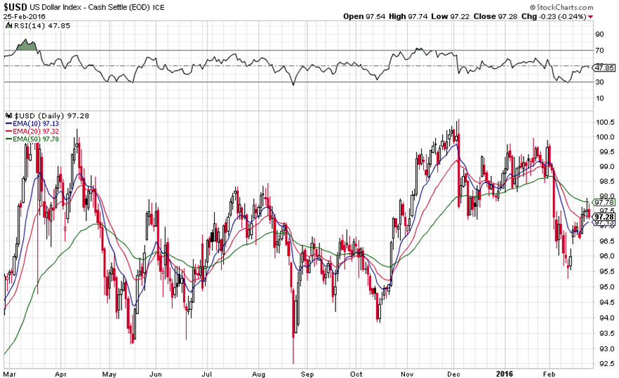 週四美國經濟數據整體表現向好,但是美元指數依舊受阻於50日均線。而隨著美國第四季度GDP修正數據將要公佈,美元指數短期內可能面臨壓力。如果RSI指標上行突破50,美元指數可能將進一步上行測試98點位,而若回落下方支撐關注97。