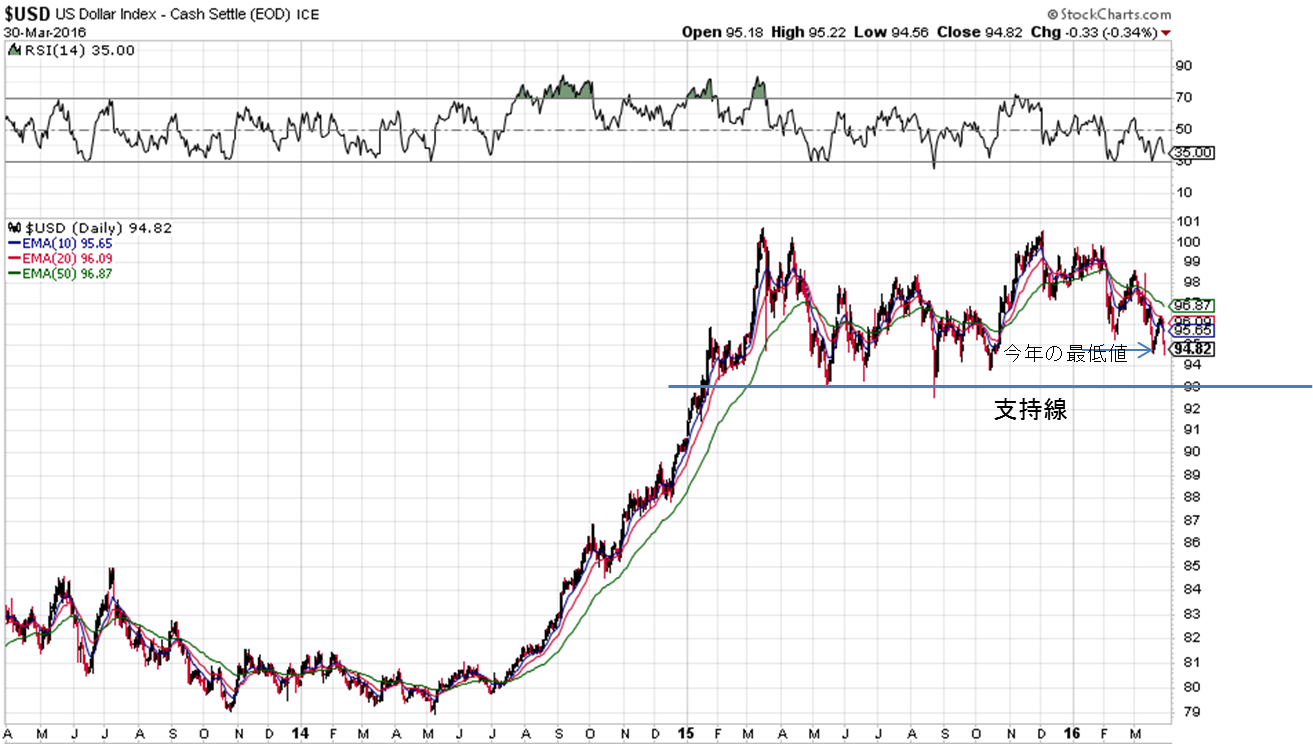 美元指數在耶倫的鴿派發言中持續下跌,現已與年內低點持平。從技術上看,短期若後市不跌破低點,則行情築底的可能性較高。若跌破低點,下方應關注重要支持位93.5點處。