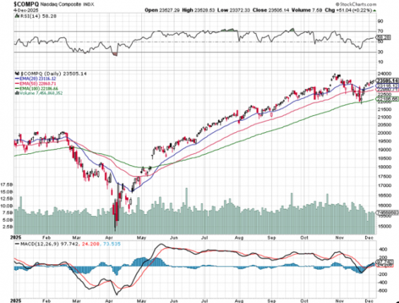 納斯達克指數在11月20日大幅波動后,目前已經站穩20日均綫上方,RSI指數中性偏多,MACD給出買入信號,預計將繼續維持一段時間的上漲。投資者應關注未來幾天的美聯儲利率決議,以及可能的日元加息對資本市場的衝擊而導致的市場反彈,建議輕倉買入。