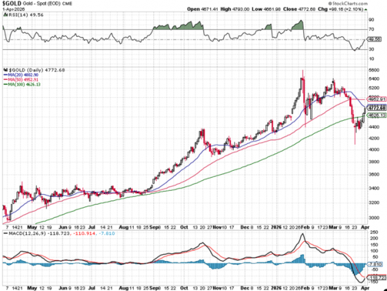 地緣衝突的市場邏輯變化,衝突升級推升油價,高油價推高通脹,市場擔憂加息,金價反而下跌,但央行購金提供一定的支撐。3月31,4月1日兩天黃金價格强勢反彈至4772美元,容易出現獲利盤抛售導致衝高回落,目前RSI從超賣反彈到中性偏賣方,MACD接近形成日綫金叉。預計未來一個月將持續震蕩,中東局勢緩和和月底美聯儲會議鴿派消息將提供上漲信號。