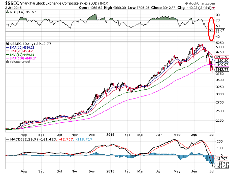 (市場更新)上證指數自六月份高位計起急瀉24%,現短天移動平均線跌穿長線,反映股價下調壓力大,但可留意RSI指數接近超賣,或有短暫技術反彈空間。