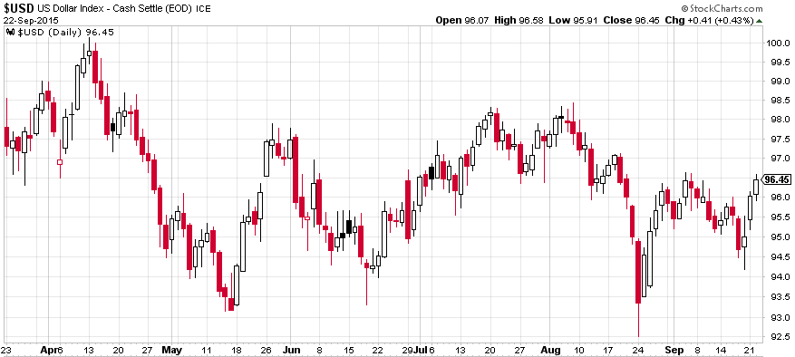 雖然未知美國何時加息,但在加息預期支持下,美匯指數近期再度轉強,並升破下降通道,短期有機會上試97,甚至98。美元轉強反映其他貨幣走弱,若情況持續,環球金球市場恐再出現大震盪。